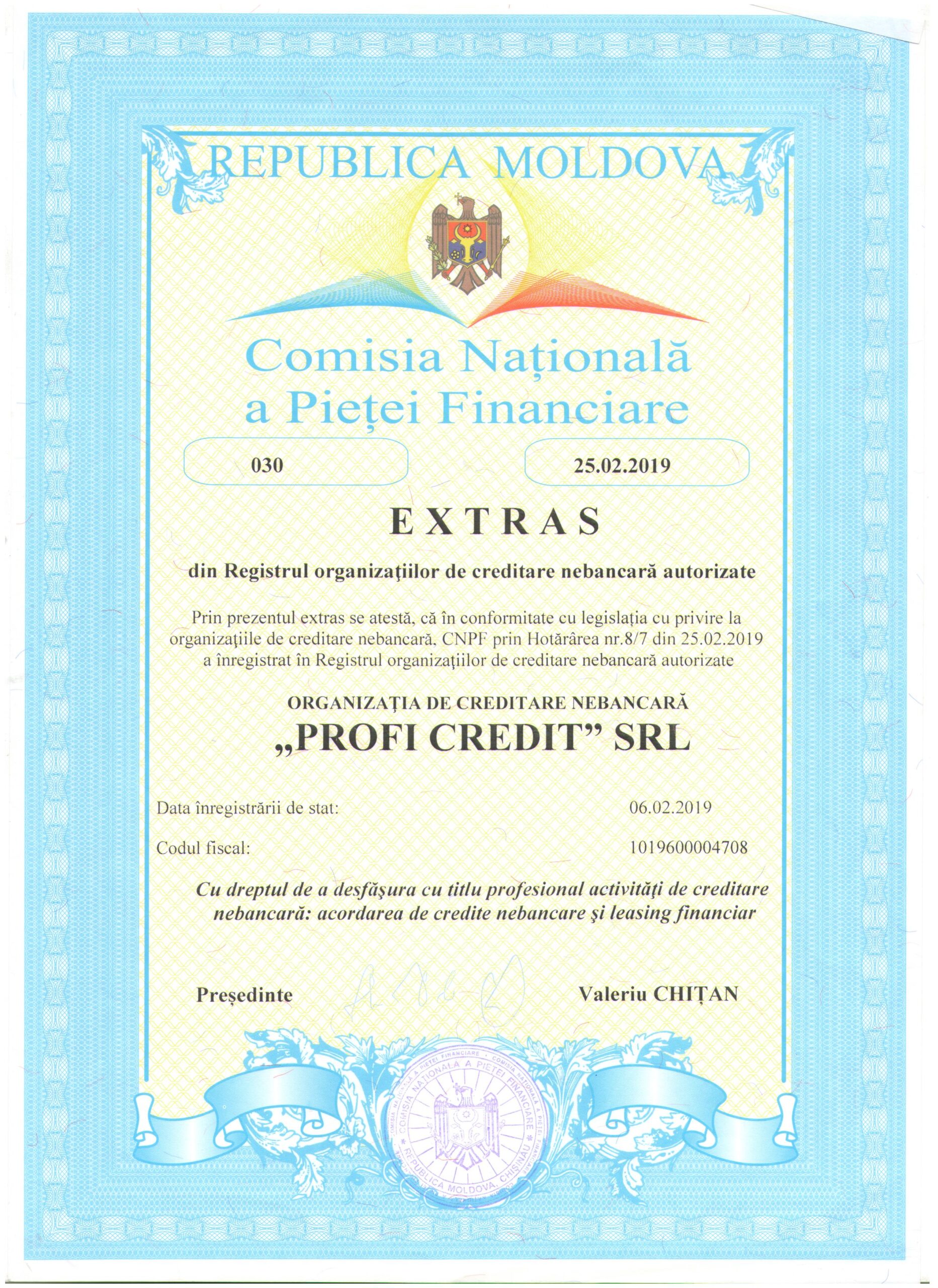 Extras din Registrul organizațiilor de creditare nebancară autorizate